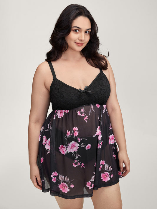 Elastic Flocked Mesh Spiderweb Sleep Dress