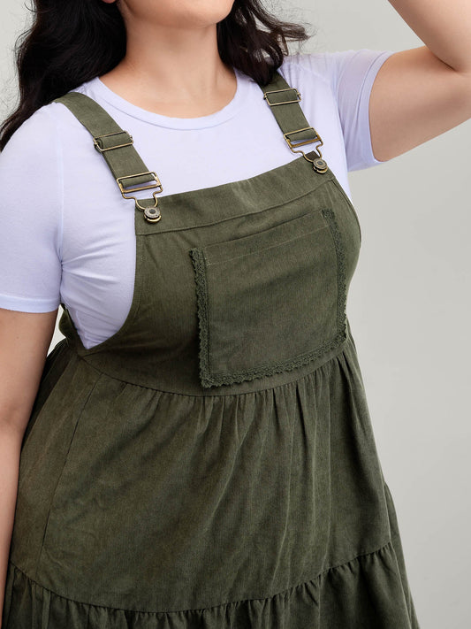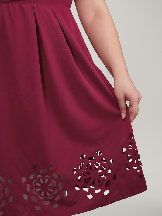 Floral Embroidered Neckline Lace Trim Midi Dress