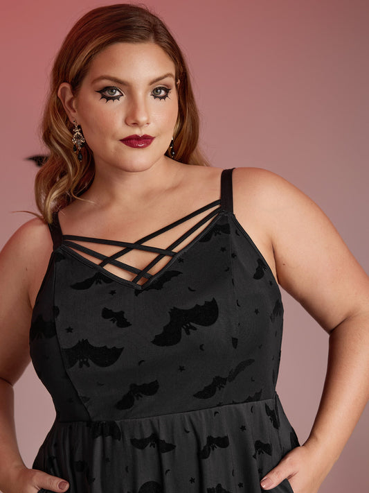 Bats Print Halloween Sheer Pockets Maxi Dress