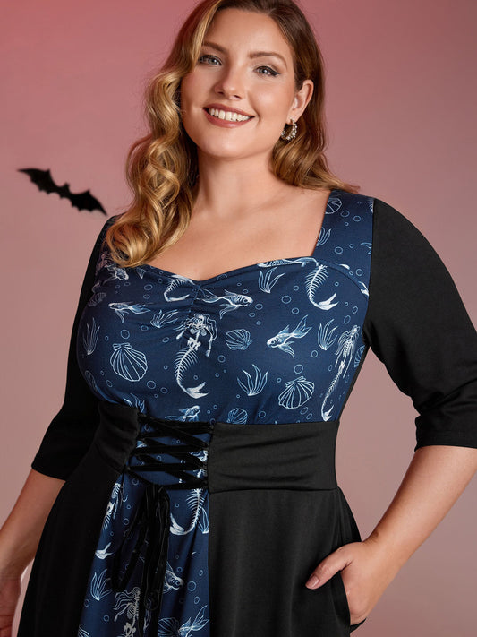 Spooky Mermaid Print Supersoft Cinched Midi Dress