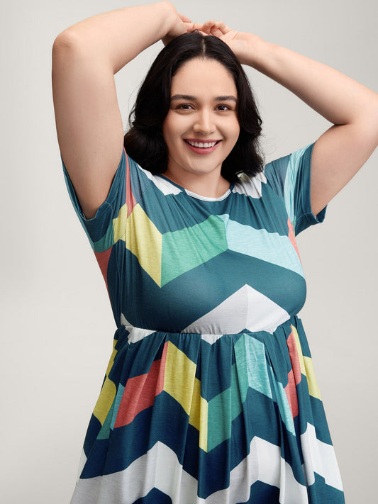 Colorful Wavy Stripes Cinched-Flared Midi Dress