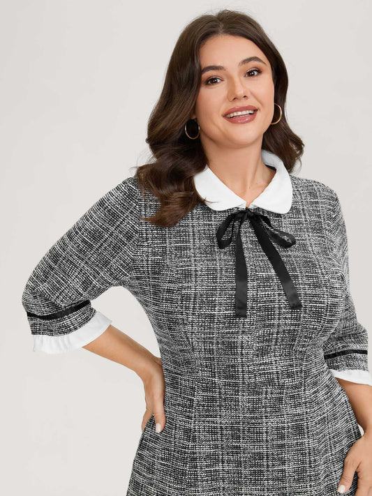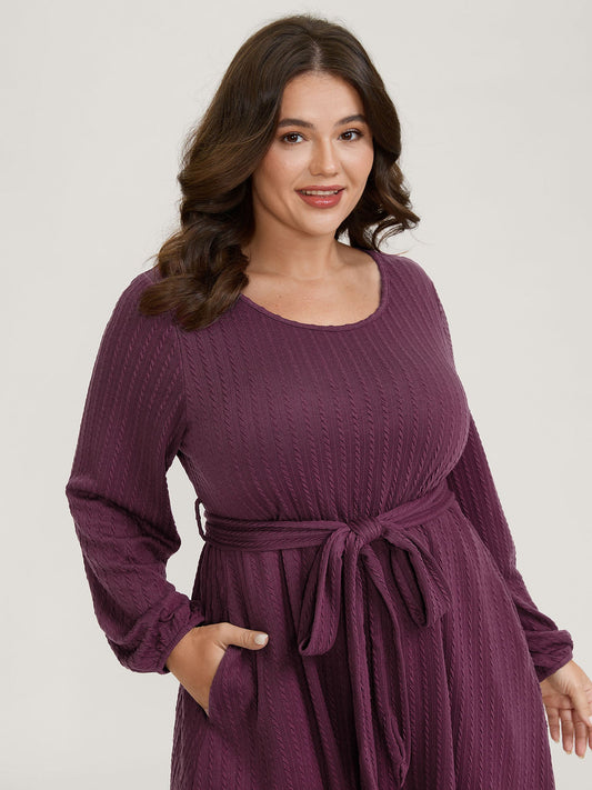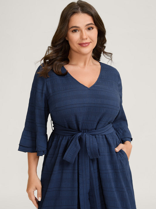 Textured Layered Ruffled Sleeve Belted Midi Dress
