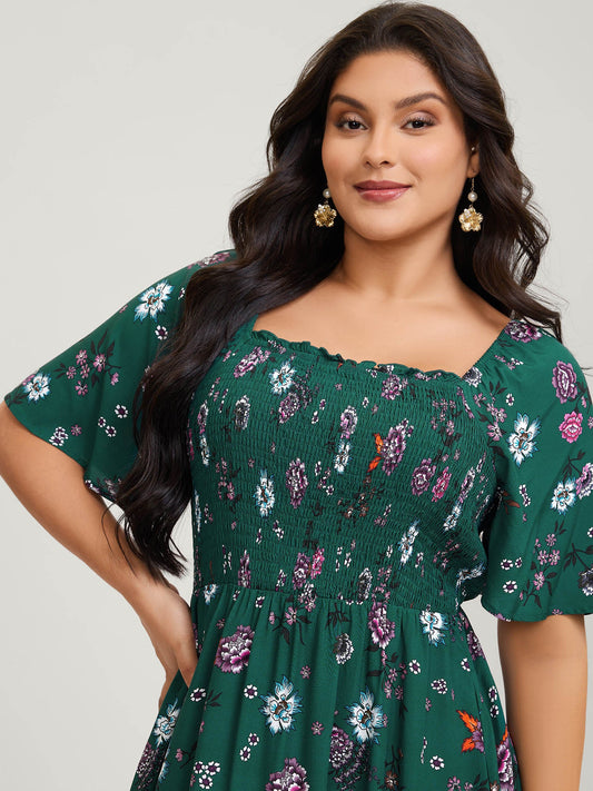 Floral Print Triangular Waist-Cinched Maxi Dress