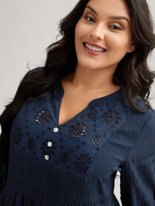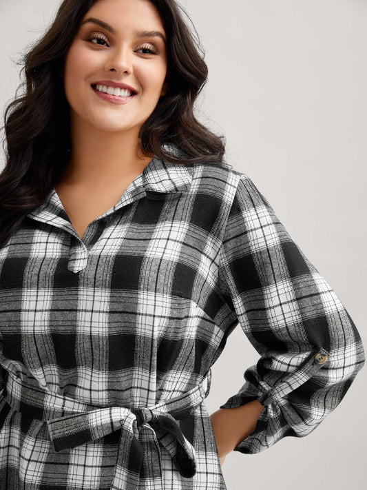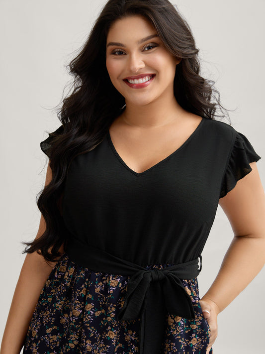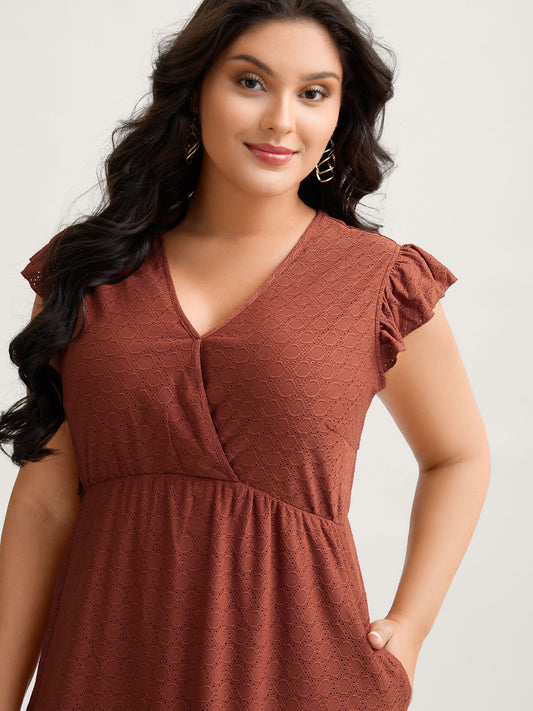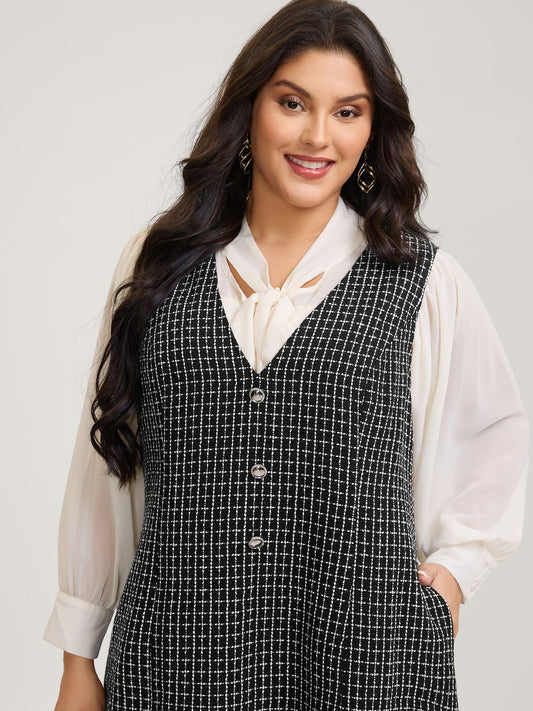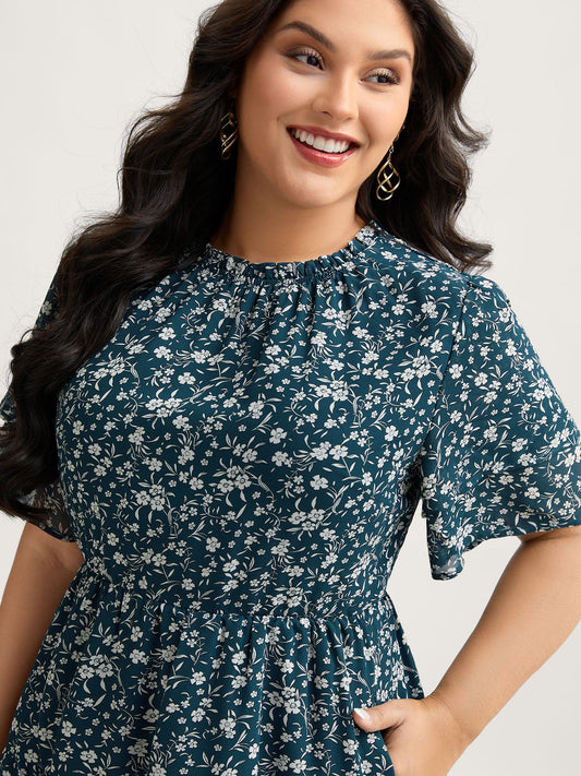 Abstract Print Shirred Puffy Sleeve Midi Dress