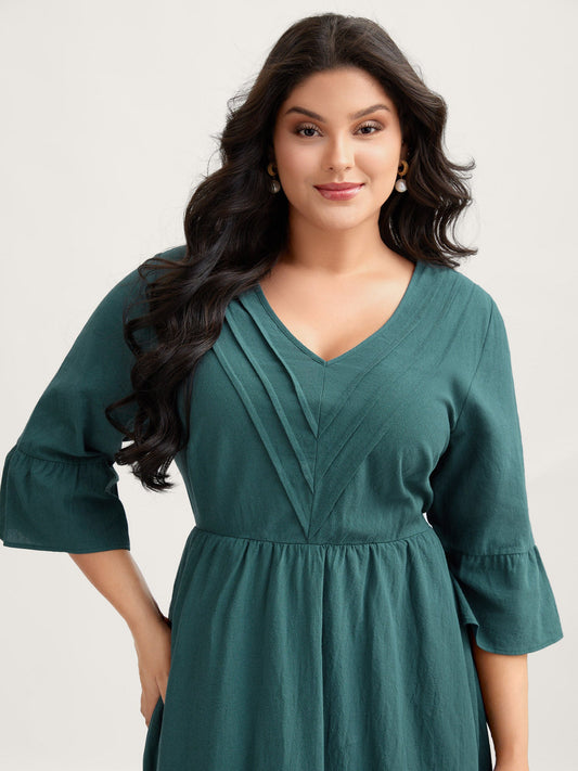 Pure Cotton Toothpick Pleats Tiered Midi Dress