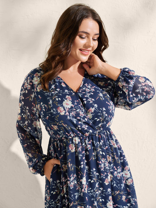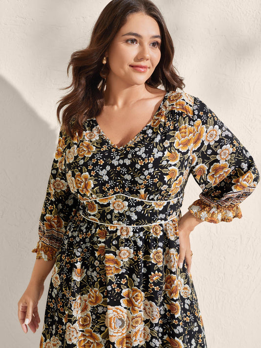 Chiffon Paisley Print Ruffled Neck Midi Dress