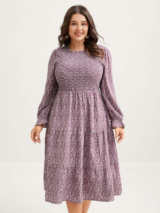 Floral Shirred Waist-Defining Pockets Midi Dress