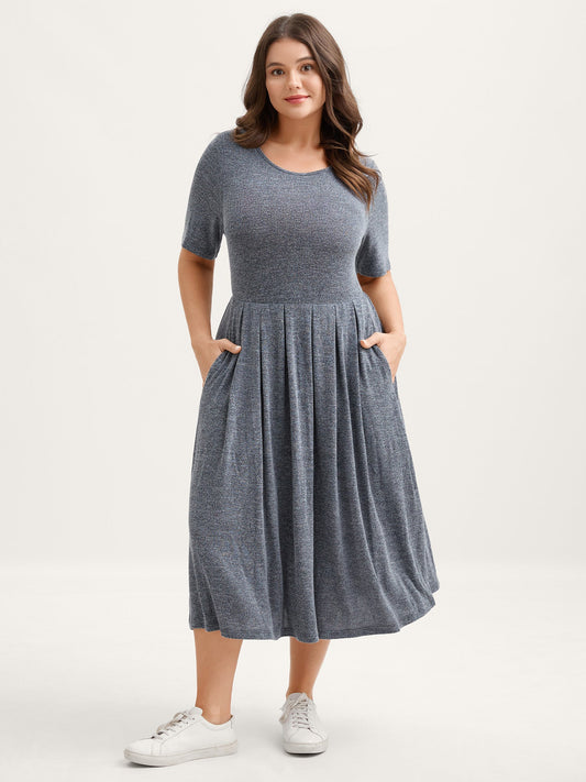 Floral Print Puffy Sleeve Pleated Midi Dress