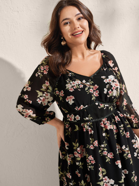 Chiffon Floral Triangular Waist Cinched Maxi Dress