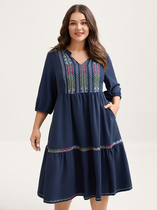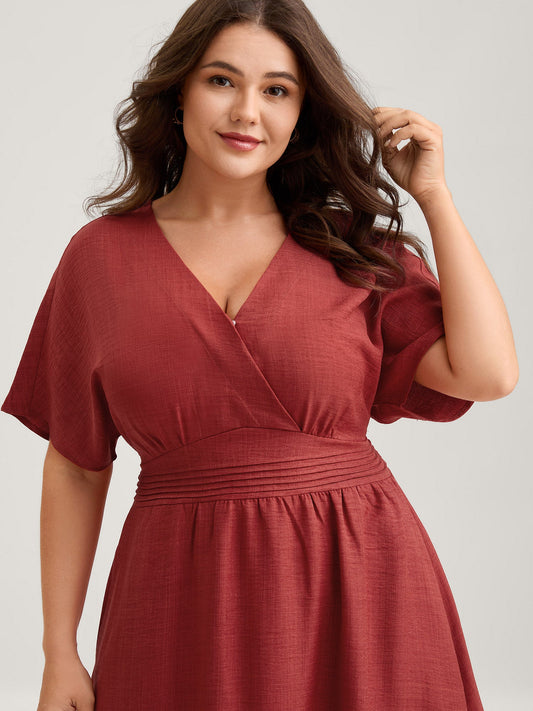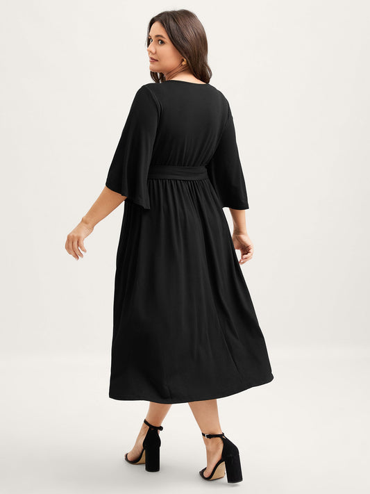 Petal Sleeve Belted Waist-Defining Midi Dress