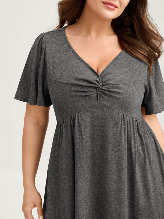 Supersoft Knotted Bodice Flared Sleeve Midi Dress