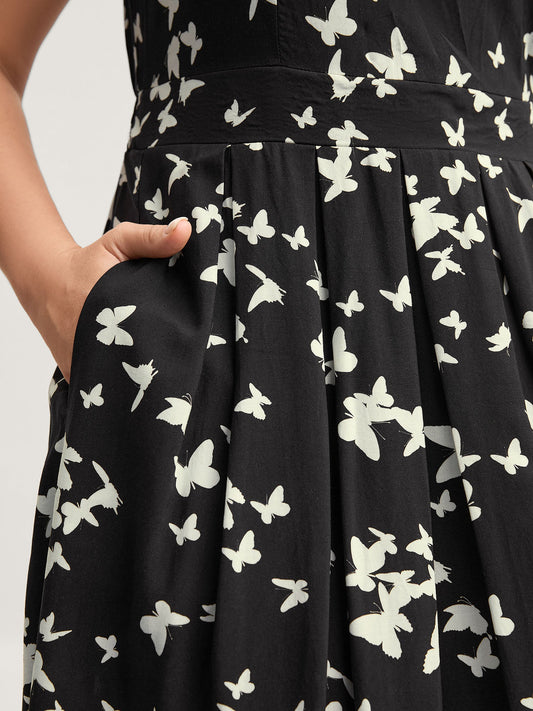 Rayon Monochrome Butterfly Stretchy Midi Dress