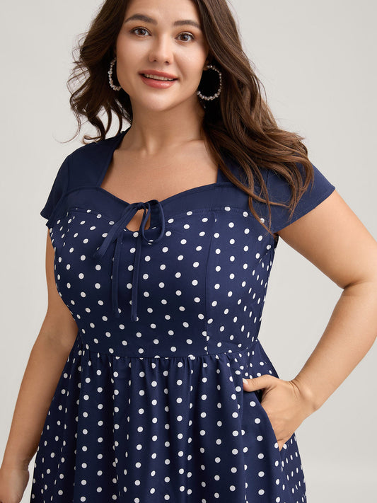 Polka Dots Stretchy Waist Pockets Midi Dress