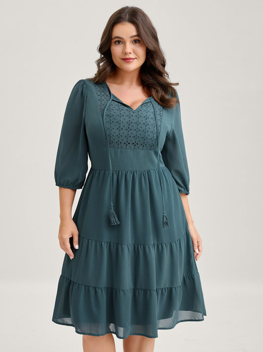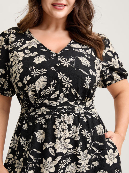 Silhouette Floral Pleated Waist V-Neck Midi Dress
