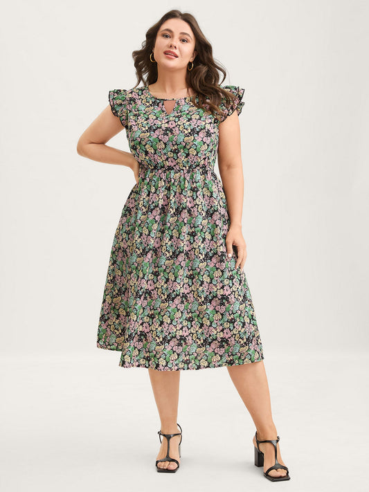 Floral Layered Ruffled Sleeve Midi Dress