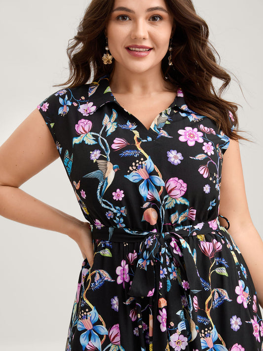 Garden Print Waist-Tie Sleeveless Mini Dress