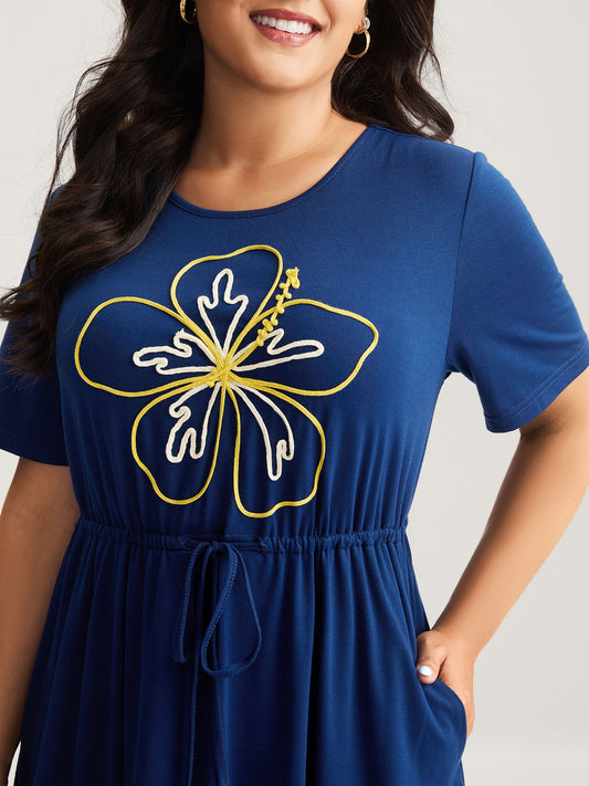 Supersoft Cord Embroidered Drawstring Midi Dress