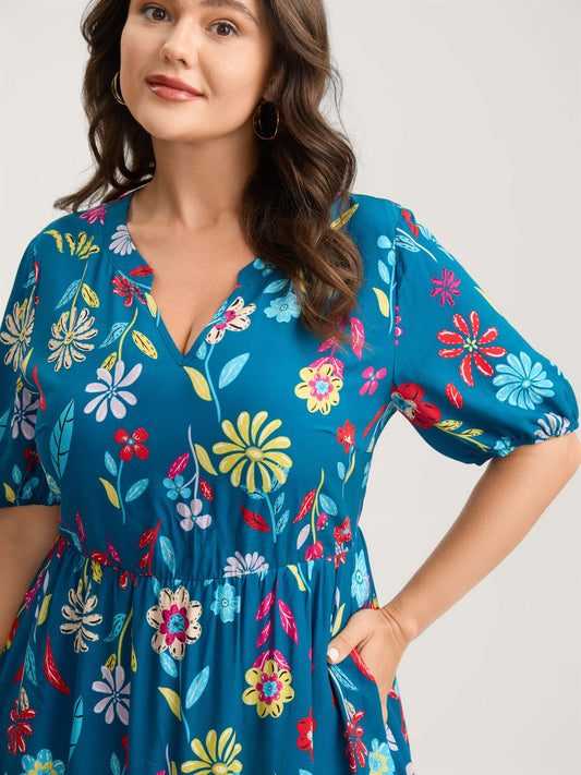 Rayon Floral Boho Print Pockets Midi Dress