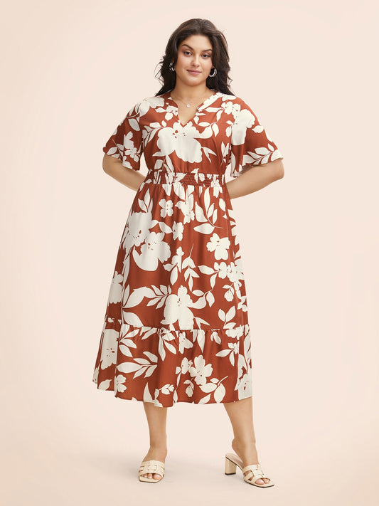 Multi-color Leopard Print Elastic Waist Midi Dress