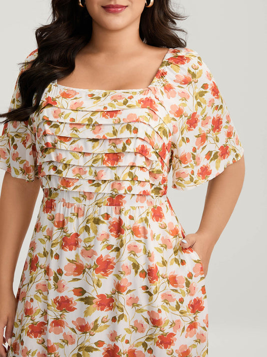 Sweet Petals Pleated Waist Tiered Midi Dress