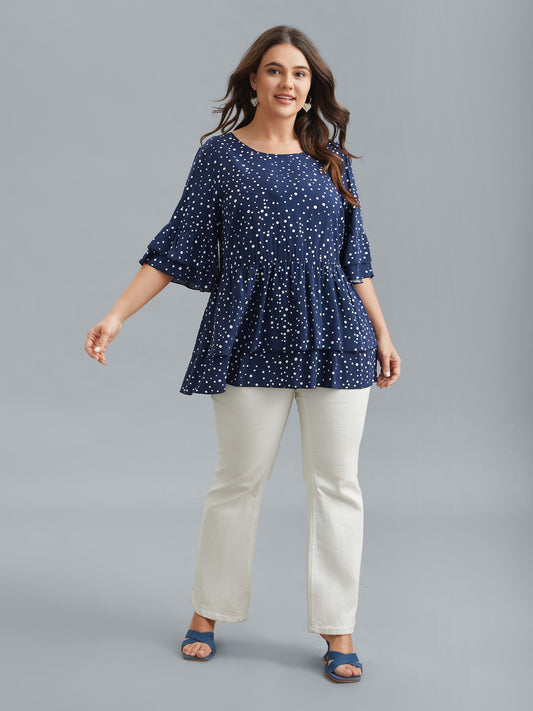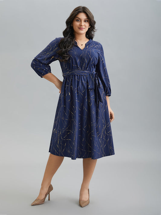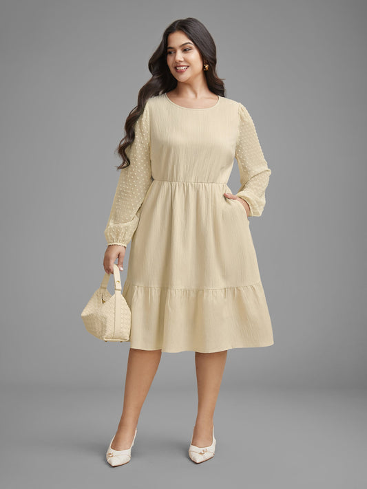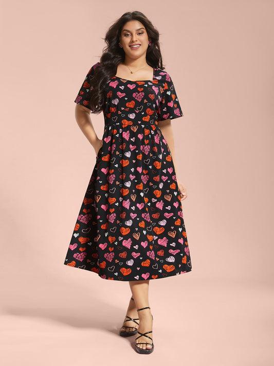 Flutter Sleeve Color Block Shirred Stretchy Midi Dress