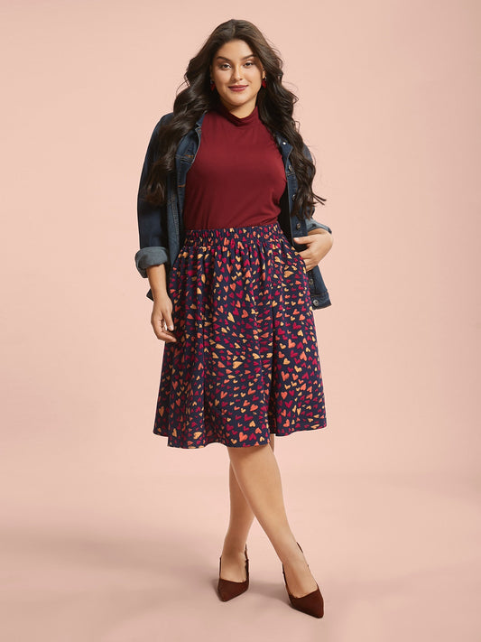 Boho Print Stretchy Waist Flared Maxi Skirt