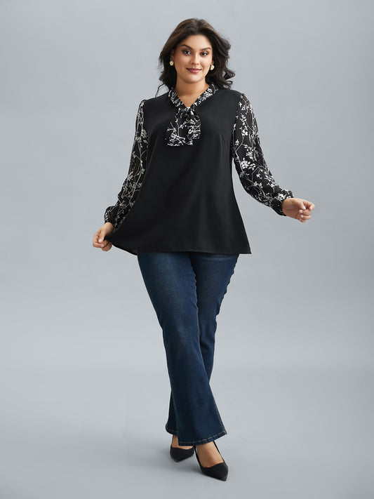 Floral Print Wrap-Neck Flared Sleeve Maxi Dress