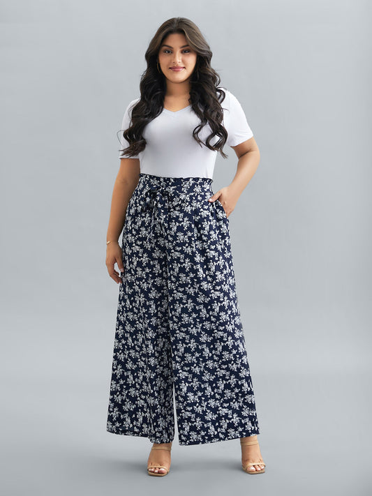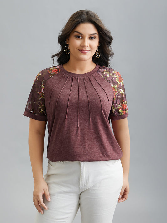 Floral Plicated Detail Heather Stretchy T-Shirt