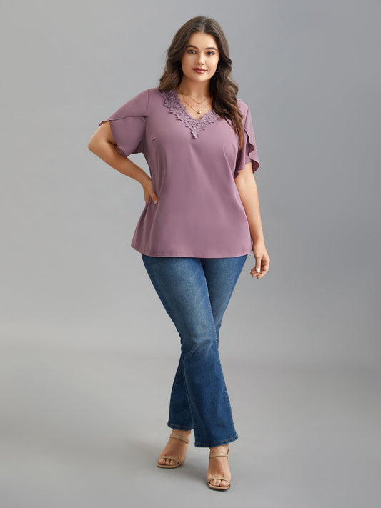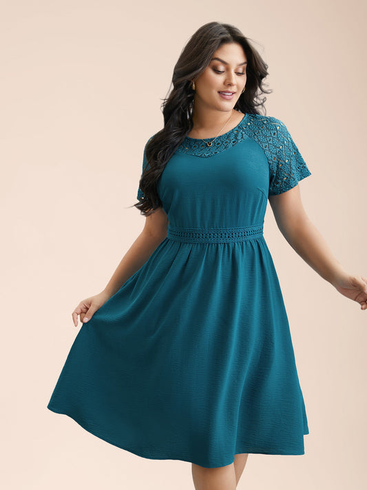 Lace Cut-Out Raglan Sleeve Pockets Midi Dress