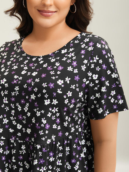Floral Print Round Neck Babydoll Top