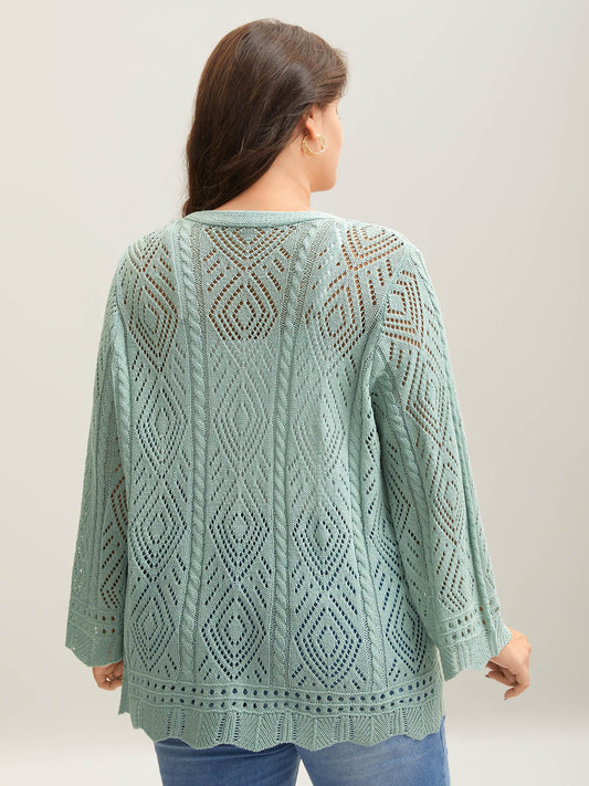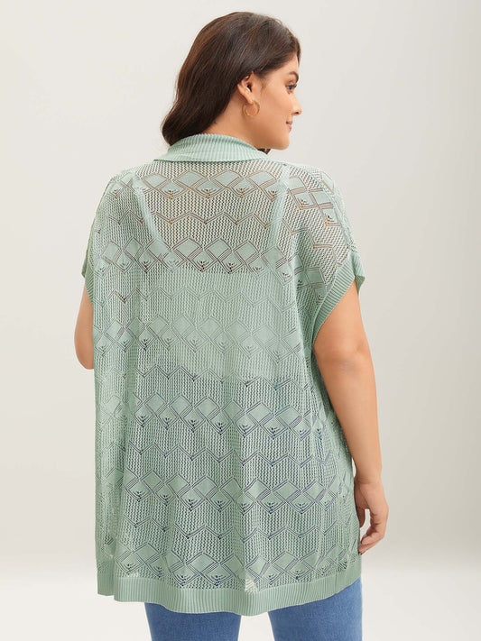 Eyelet Trim Folded Collar Knit Cardigan