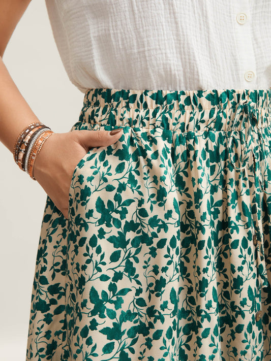 Stretchy Waist Boho Print Tied Midi Skirt