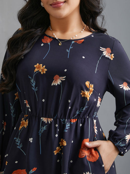 Floral Print Patchwork Ruffle Sleeve T-Shirt