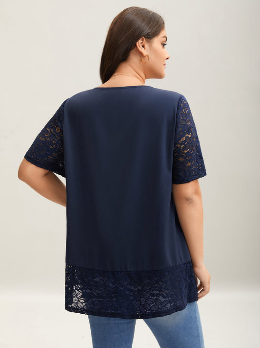 Stretchy Mixed Material Spliced Lace Blouse