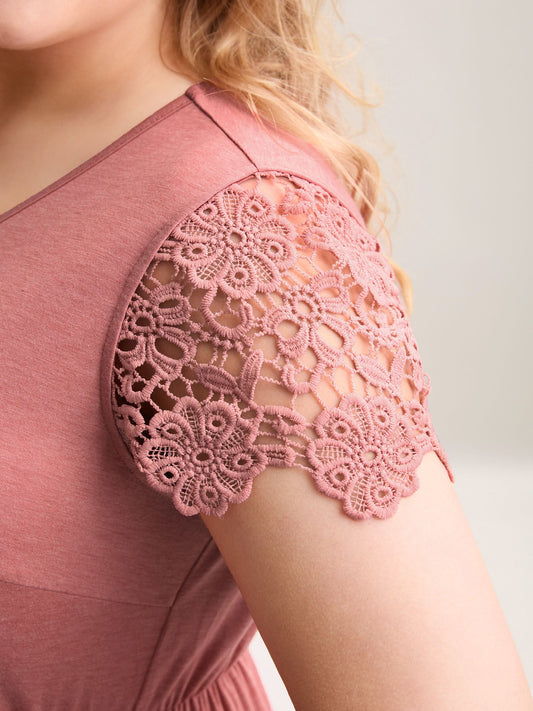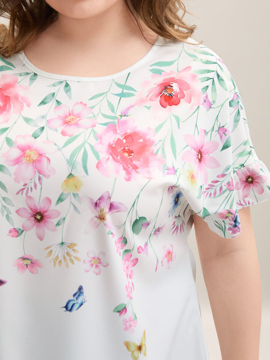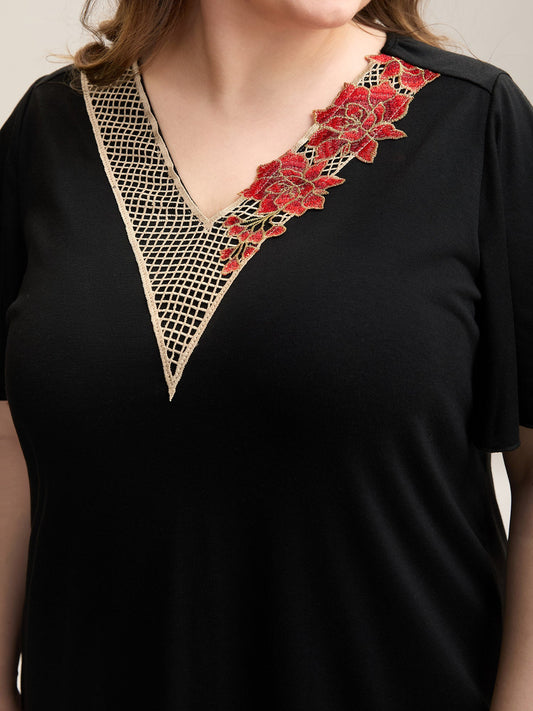 Lace Floral Flutter Plain T-Shirt