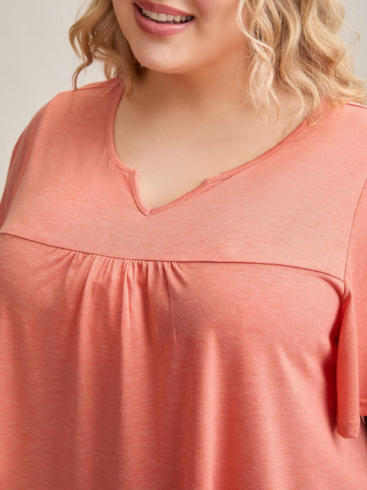 Heathered Split Neckline Plain T-Shirt
