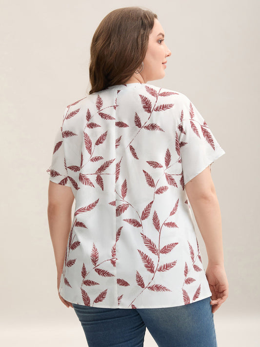 Leaf Print Notched Collar Blouse