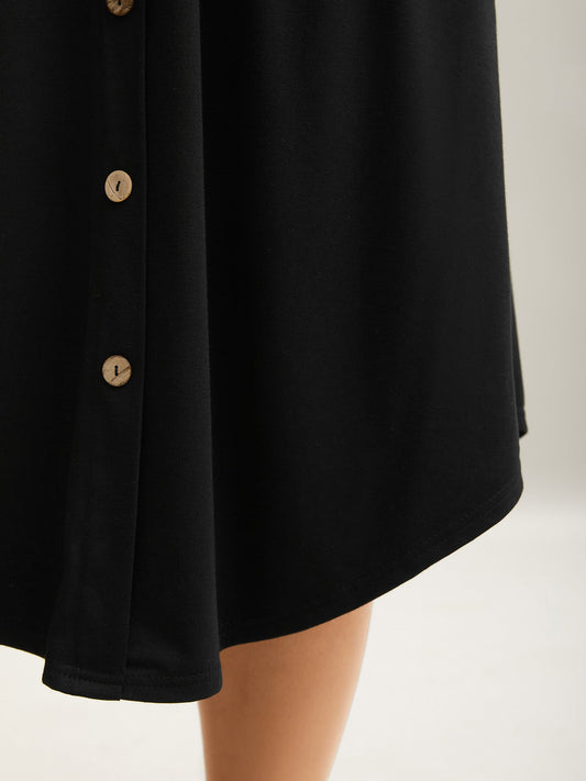 Button Detail Hi-Low Hem Midi Skirt