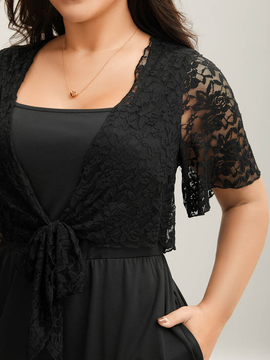 Front-Tie Sheer Lace Sleeve Jumpsuit