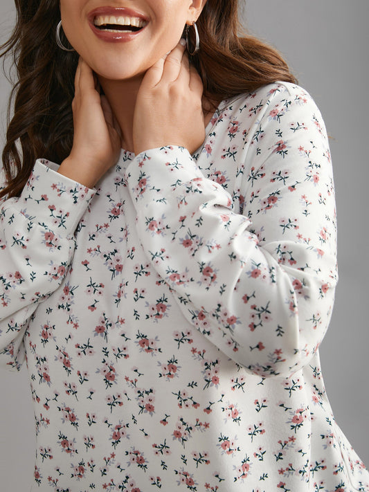 Notched Silhouette Floral Print Lantern Sleeve Blouse