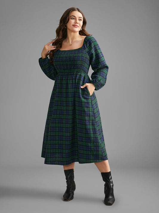 Faux Suede Lace Panel Lantern Sleeve Dress