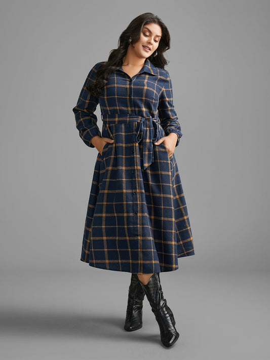 Plaid Button Through Belted Dress