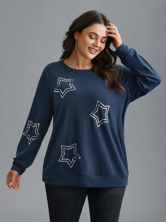 Star Embroidered Slightly Stretchy Sweatshirt