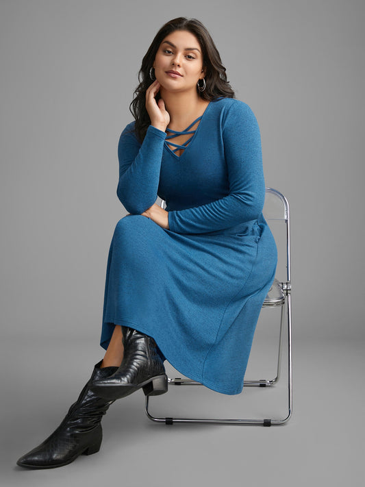 Plain Crisscross Pocket Knit Dress