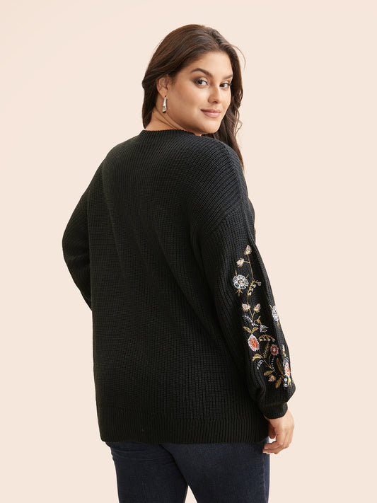 Floral Embroidered Drop Shoulder Sleeve Pullover