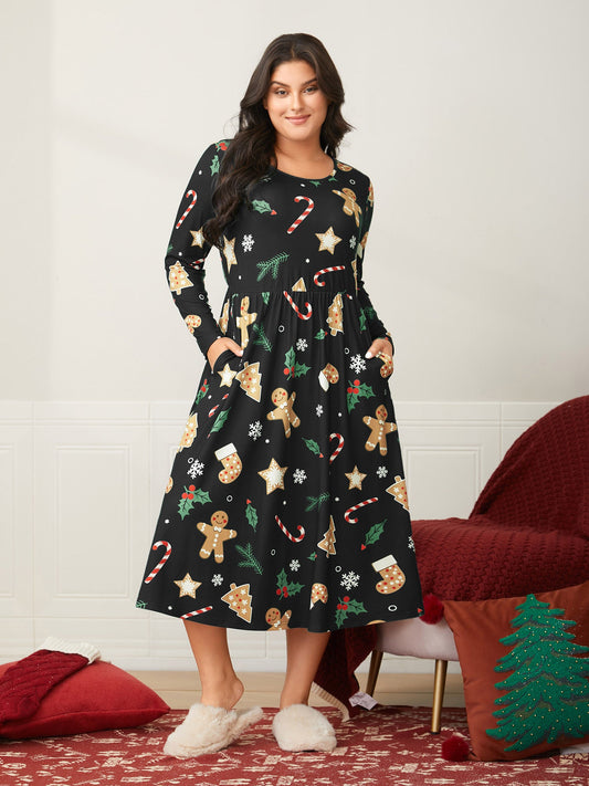 Gingerbread CandyCane Lounge Midi Dress