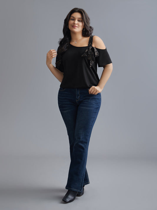 Heather Ruffle Sleeve Arc Hem Jersey Top