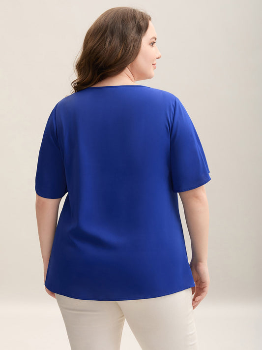 Lace V-Neck Lotus Leaf Sleeve Plain Blouse
