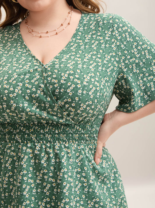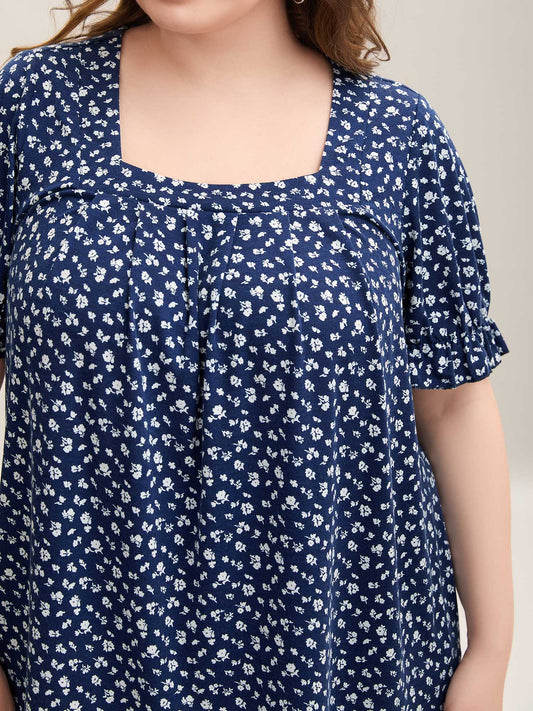 Spliced Printed Tiered Ruffled Sleeve T-Shirt