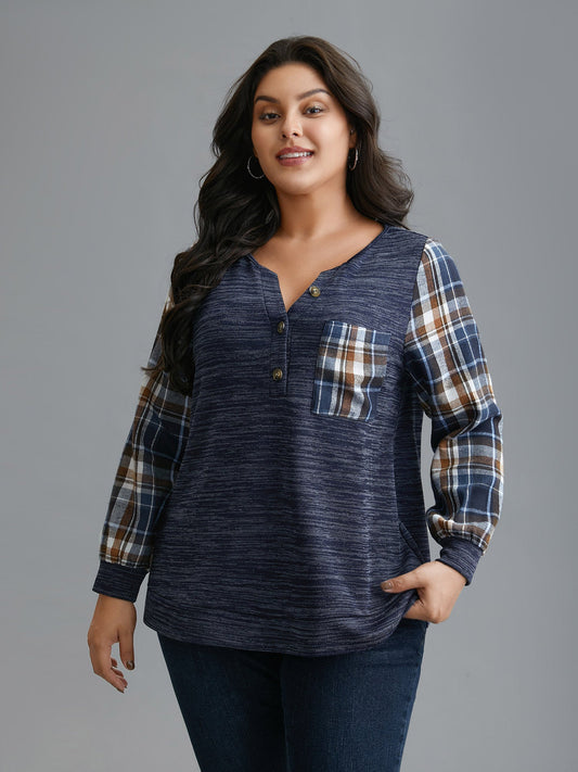 Plaid Sleeve Button Up Patchwork Sweatshirt